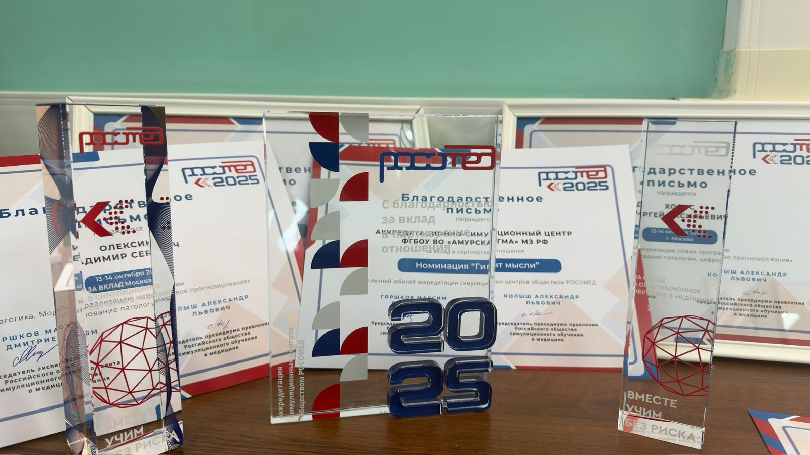 Аккредитационно-симуляционный центр Амурской ГМА отмечен наградой РОСОМЕД в номинации «Гигант мысли» за многолетнее плодотворное сотрудничество и выдающиеся достижения в области симуляционного обучения. За 10 лет работы центр подтвердил высокий уровень организации образовательного процесса, одним из первых успешно прошел общественную аккредитацию РОСОМЕД и получил статус симуляционного центра высшего уровня.