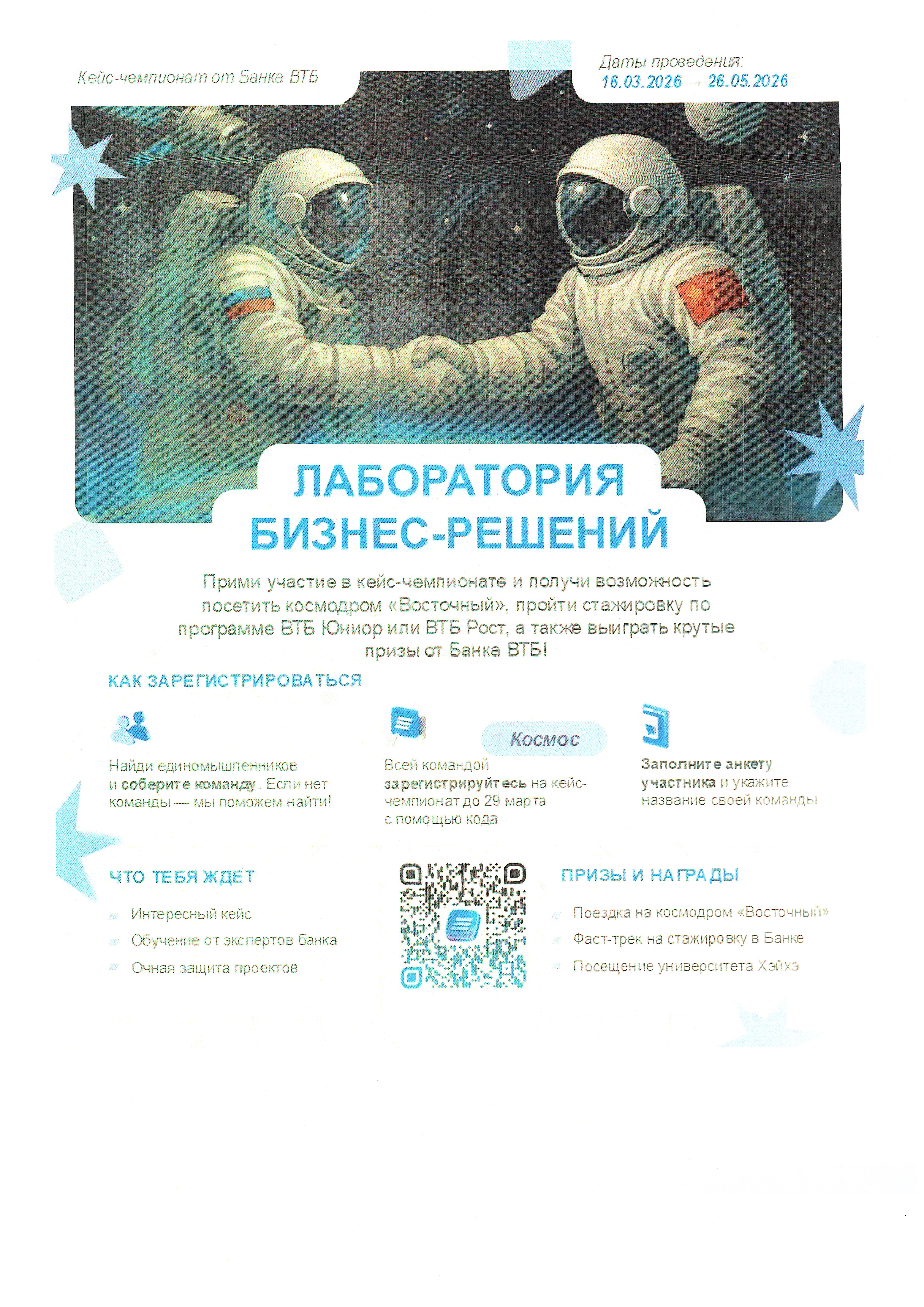 Это уникальная площадка кейс-чемпионатов ВТБ, где студенты решают реальные бизнес-задачи, развивают инновационное мышление и раскрывают свои таланты.