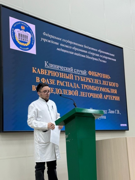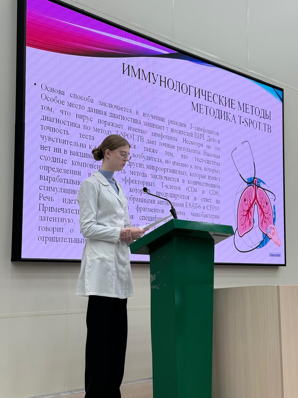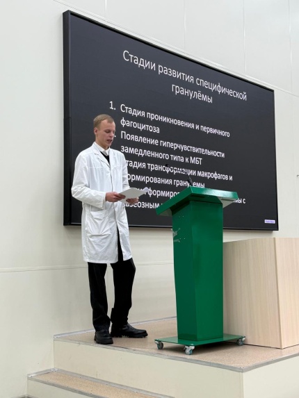 19 ноября 2025 года состоялось заседание студенческого научного кружка кафедры патологической анатомии с курсом судебной медицины совместно с кафедрой общей гигиены. На заседании кружка присутствовали учащиеся медицинского класса 11 школы на тему «Клинико-морфологические и эпидемиологические особенности туберкулёза»— вопрос, который и сегодня не теряет своей актуальности. Заседание кружка носило инклюзивный характер. Студентки 317 группы — Ирина Мусина и Цыдыпылова Цыригма — представили содержательный доклад о возбудителях туберкулеза, особенностях эпидемиологии и механизмах развития инфекции. Особый интерес аудитории вызвало выступление студентки 301 группы Станиславской И., посвящённое вопросам диагностики и профилактики туберкулеза. О тонкостях морфологии клеточных реакций при туберкулезе рассказал студент 309 группы Колотов Андрей, подробно осветив ключевые изменения в тканях на различных стадиях заболевания. Не менее впечатляющей оказалась клиническая часть заседания. Были представлены два клинических случая: 1. Фиброзно-кавернозный туберкулез лёгкого в фазе распада, осложнённый тромбоэмболией лёгочной артерии — доклад подготовил Георгий Лазо, студент 303 группы. И 2. Генерализованный туберкулёз с полиорганным поражением - клинический разбор от Красулина Алексея, студента 313 группы. Высокая информативность докладов и их практическая значимость вызвали бурную дискуссию среди участников. Заседание прошло в тёплой и рабочей атмосфере, оставив у студентов яркие впечатления. В заключении выступила Н.В. Меньщикова, которая поблагодарила всех докладчиков за интересные и познавательные сообщения и студентов и школьников, которые посетили заседание