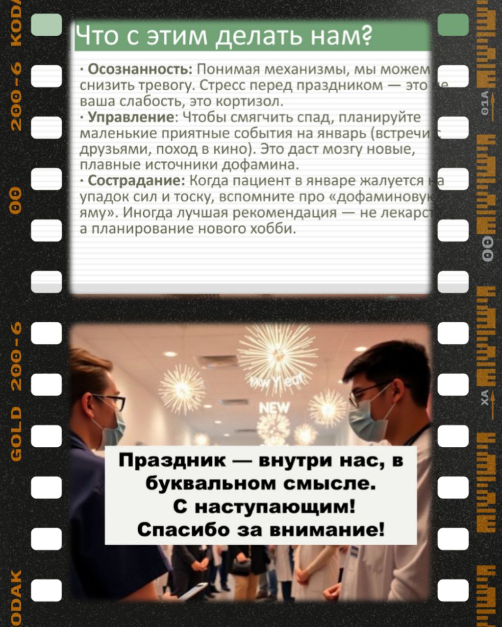 Докладчик проанализировала нейрохимический баланс между гормонами удовольствия и стресса в новогоднюю ночь: