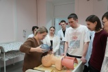 Ребята разделились на две группы. Первая отрабатывала инструментальное восстановление проходимости верхних дыхательных путей. Вторая группа в форме игры разбиралась в навыках эффективной коммуникации в медицине.