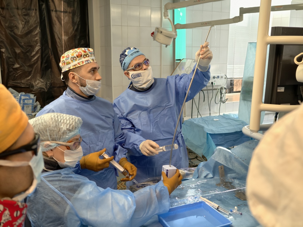 Для обучения новой методики двое специалистов Клиники кардиохирургии Амурской ГМА ездили в Турцию. Это врач ультразвуковой диагностики и зав. кабинетом рентген-хирургии. По словам Александра Коротких, при выполнении этой операции главными являются именно навыки специалиста УЗИ. Он должен максимально владеть правильным чтением эхо-картины сердца, досконально знать этапы операции и понимать, что именно делает хирург. Также очень важна и аппаратура. В 2020 году в Клинике кардиохирургии Амурской ГМА был закуплен экспертный аппарат УЗИ, а в 2025 году специально для проведения таких операций был закуплен датчик последнего поколения.