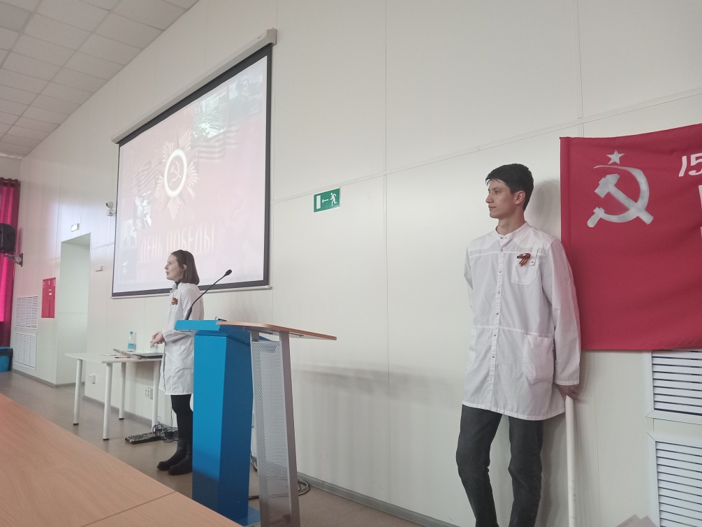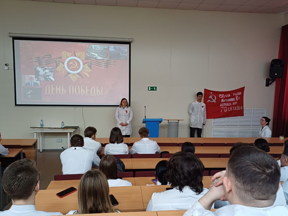 Красное знамя Победы было торжественно представлено в ходе мероприятия, прозвучала история этого знамени. Студенты читали стихи, написанные во время Великой Отечественной войны и в наше время. В них звучит боль о потерях, гордость победы и благодарность потомков за подвиг советских солдат! Стихи выбирали сами студенты, многие читали наизусть, эмоционально, проникновенно. Использовались видеоматериалы военных времен и, конечно, песни «День Победы», «Журавли». Всё это помогло прочувствовать цену Победы, единство всего народа, причастность каждого россиянина к народному подвигу, к гордости за свою страну!!