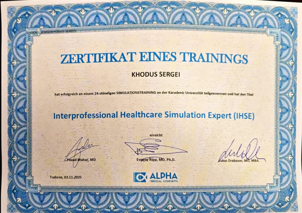 Заведующий кафедрой анестезиологии, реанимации, интенсивной терапии и скорой медицинской помощи Сергей Ходус и старший преподаватель кафедры Владимир Олексик приняли участие в Международном медицинском симуляционном тренинге "Эксперт междисциплинарного симуляционного обучения в медицине". Он проходил с 1 по 4 ноября на базе симуляционного центра MEDSIM Черноморского Технологического Университета г. Трабзон (Турция). Вместе со специалистами нашей Академии в тренинге участвовали руководители и преподаватели симуляционных центров со всей России.