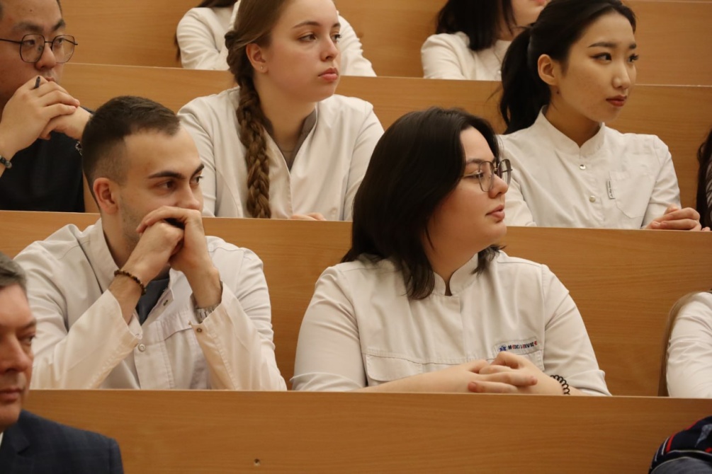 Сегодня на встречу со студентами приехали главные врачи районных больниц из Белогорска, Магдагачи, Завитинска, а также руководитель бюро судебно -медицинской экспертизы Амурской области