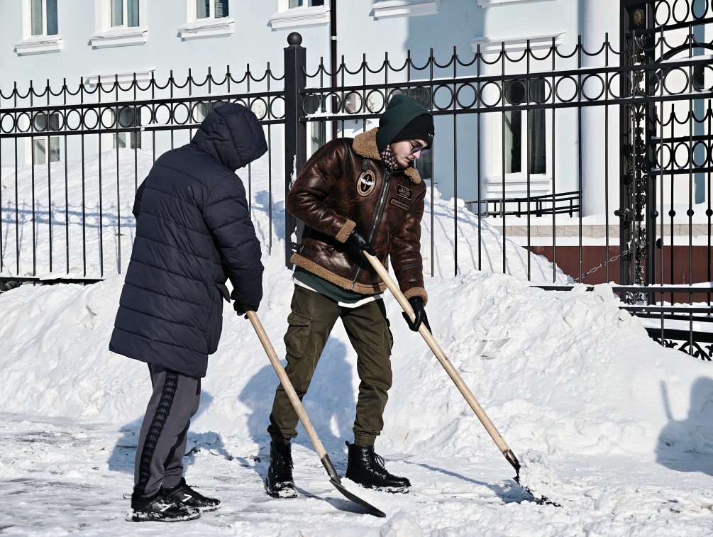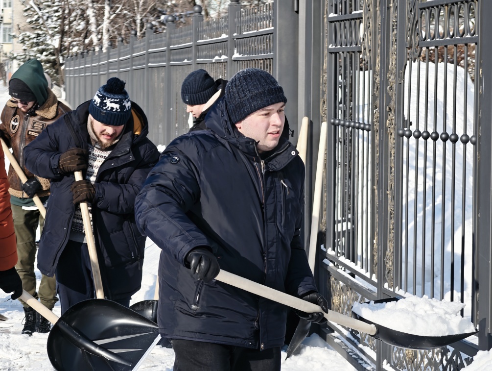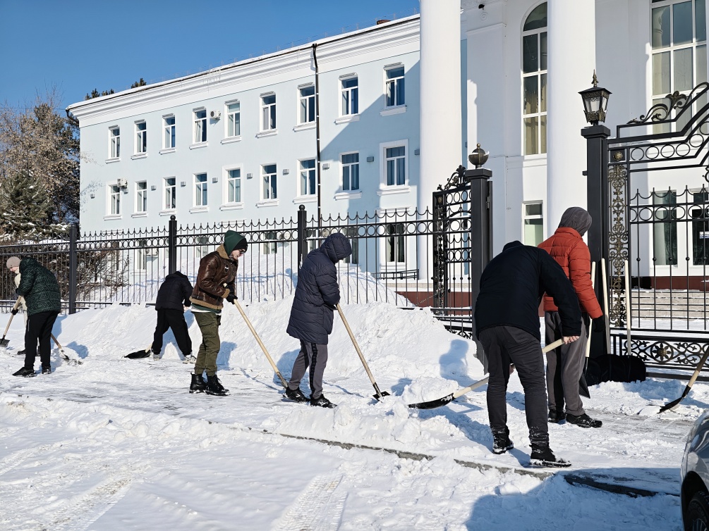 «Накануне наши студенты завершили уборку территории после прошлого мощного снегопада, который прошел в городе несколько дней назад. За два дня работе приняли участие 29 человек. Однако вчера снег выпал снова, поэтому сегодня ребята опять вышли на уборку. С утра снег расчищали 20 человек, и еще 20 студентов будут убирать его после обеда», - рассказал проректор по административно-хозяйственной работе Максим Цой.