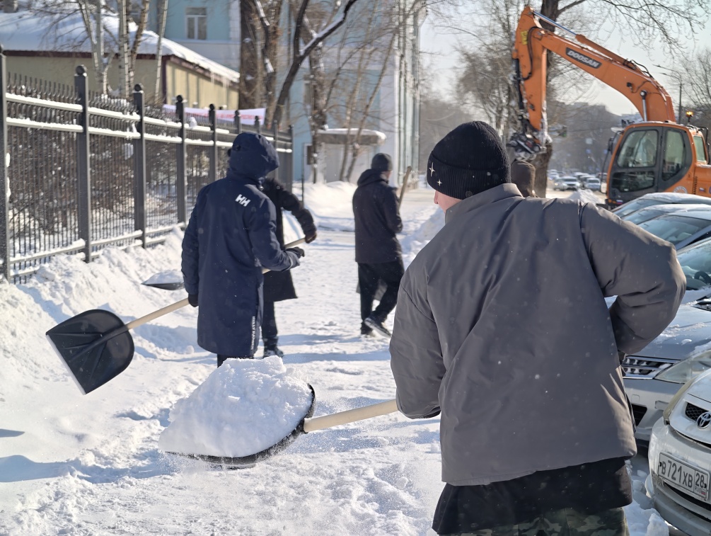 Студенты уберут снег с тротуаров по улице Горького возле морфологического, теоретического и главного корпусов, а также возле Клиники кардиохирургии Амурской ГМА. Также они расчистят территорию внутри дворов корпусов и территорию, закрепленную городом – западную сторону улицы Кузнечной на участке от Горького до Октябрьской и южную сторону улицы Октябрьской от Кузнечной до Шимановского.