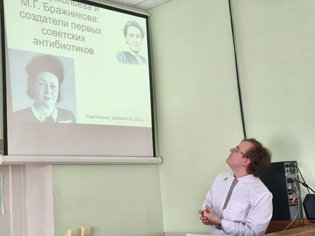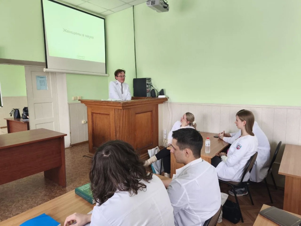 На кафедре гистологии и биологии состоялось воспитательное мероприятие, посвящённое вкладу женщин-учёных в формирование биомедицинской науки СССР и России. На встрече присутствовали студенты первого и второго курсов — более 70 человек.
