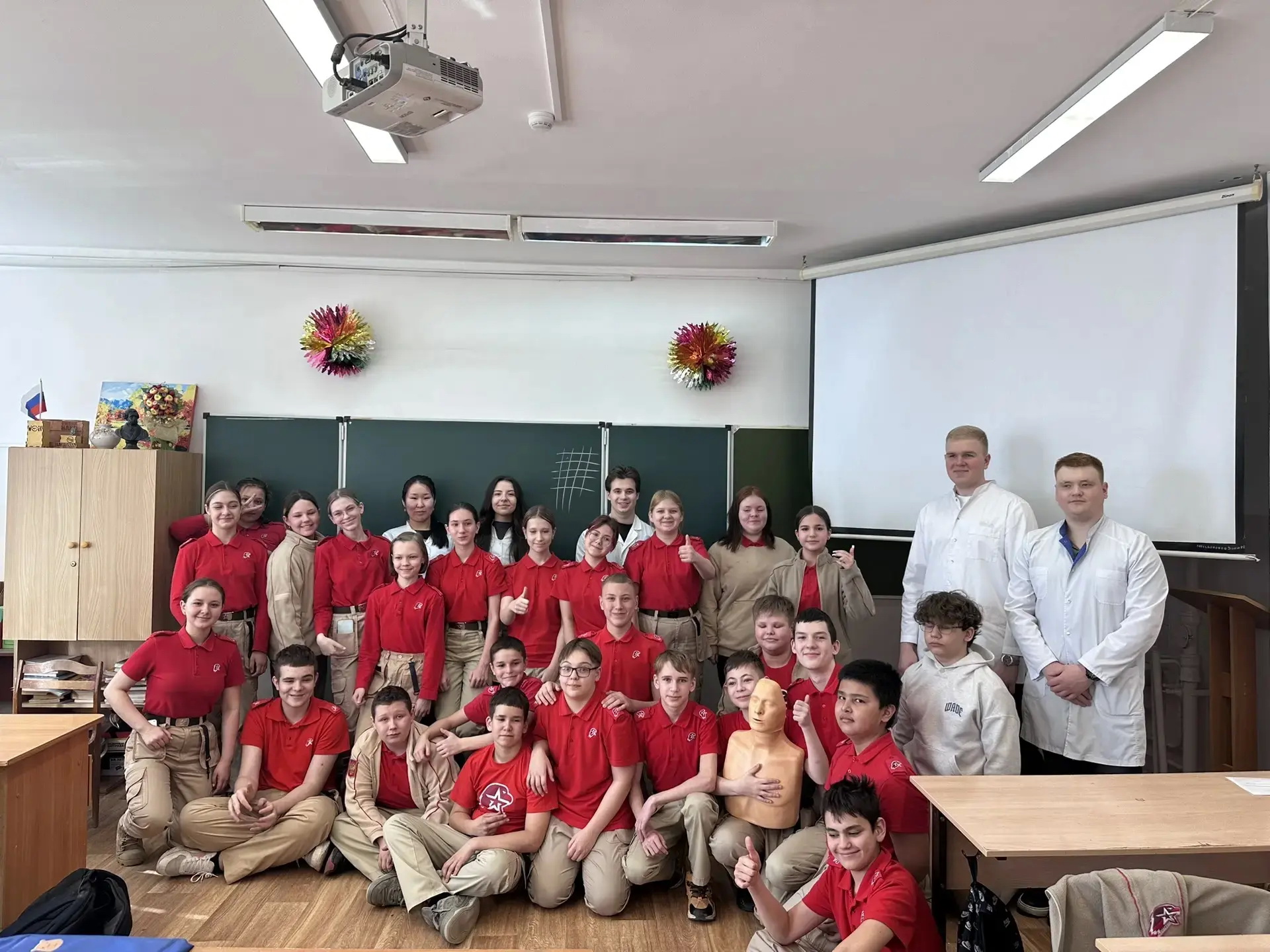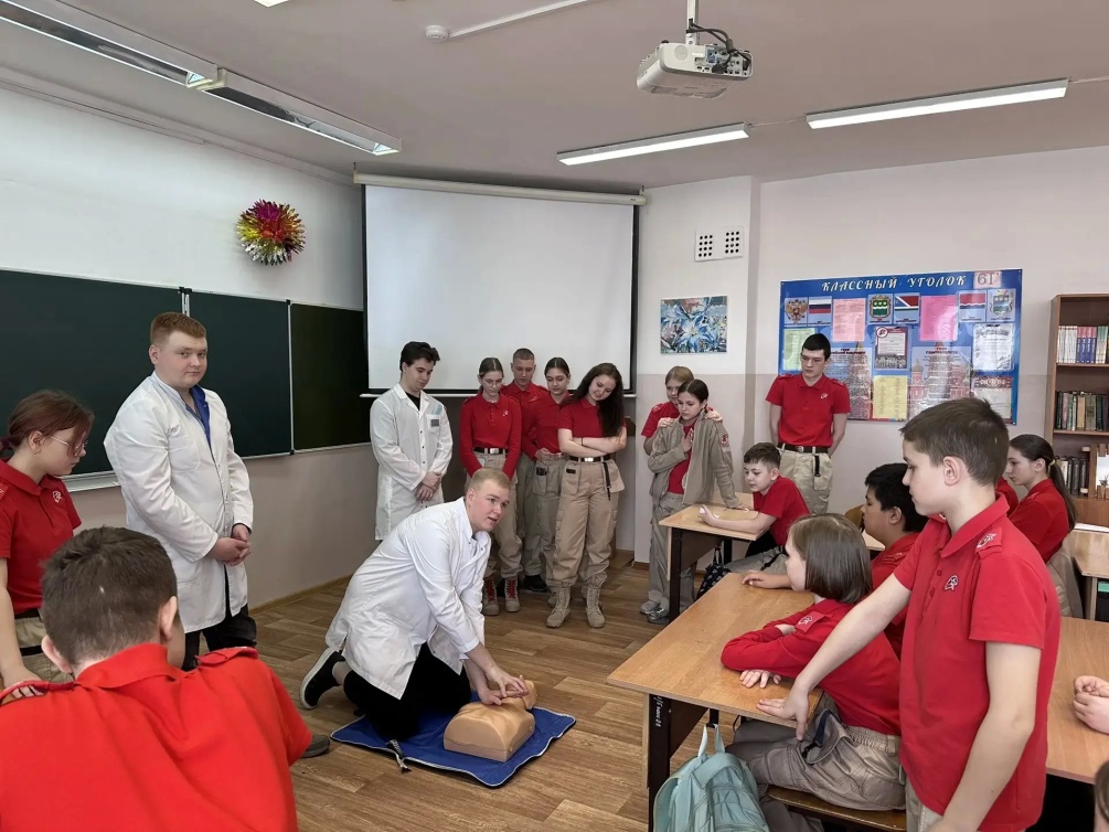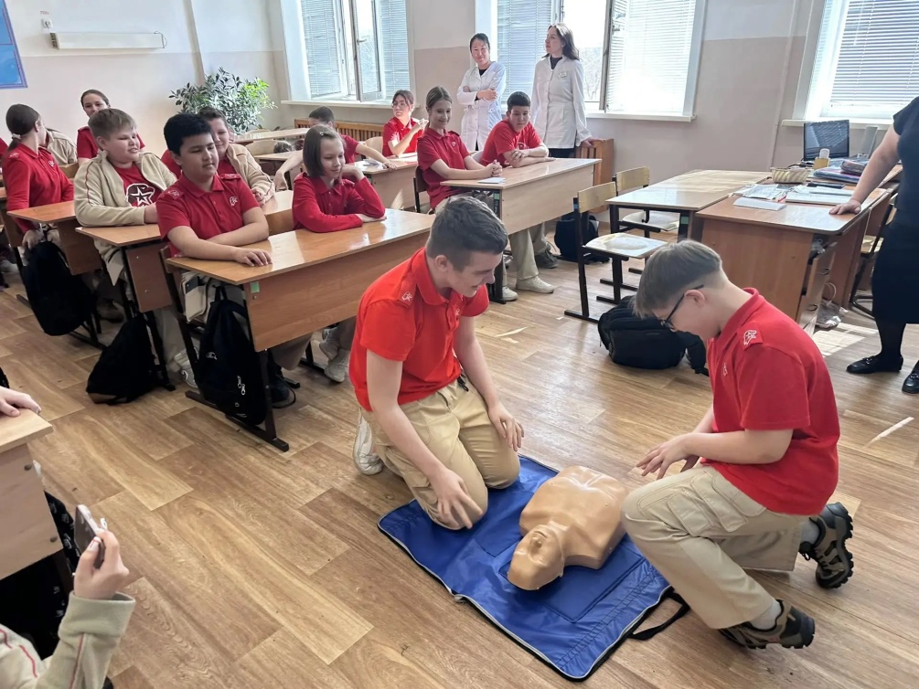 Для ребят состоялся мастер-класс по основам оказания первой помощи пострадавшим в чрезвычайных ситуациях: базовая сердечно-лёгочная реанимация, оказание помощи при инородных телах верхних дыхательных путей, остановка кровотечения, иммобилизация конечностей при переломах.