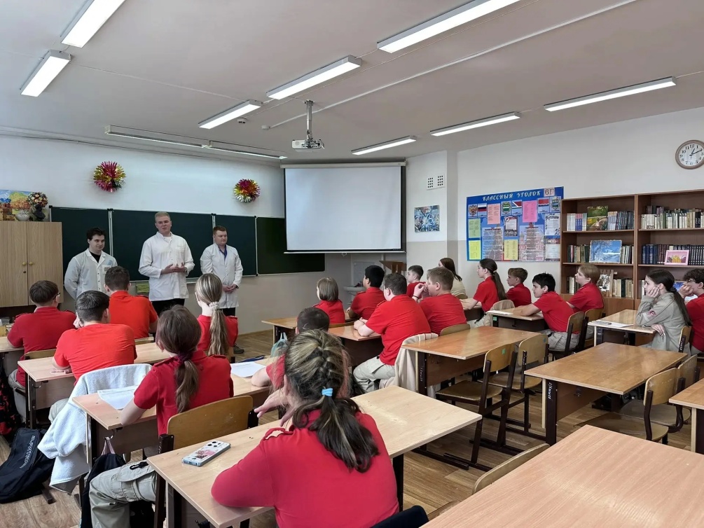Будущие врачи рассказали школьникам о профессии врача и про свою учебу в медицинской академии, затронули условия поступления в медицинский вуз.