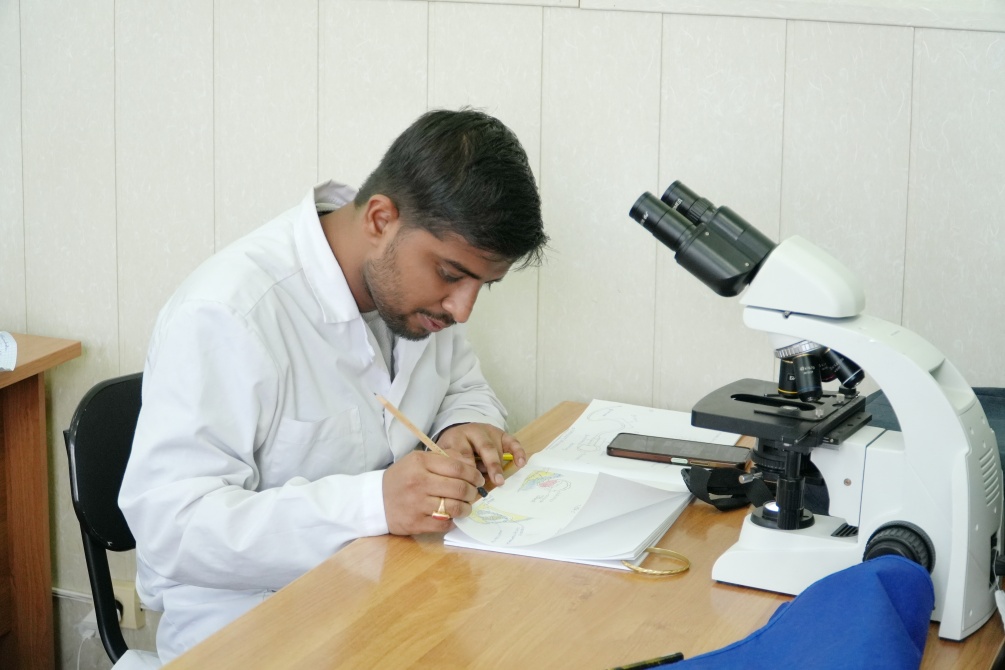 — Моё изучение цитологии, гистологии и эмбриологии успешно продвигается. Я регулярно повторяю пройденный материал и практикуюсь в составлении иллюстрированных диаграмм для закрепления полученных знаний. Это очень интересный, хоть и сложный предмет. Из сложностей отмечу языковой барьер, который каждый день успешно преодолевает наш преподаватель, — рассказал студент первого курса 124 группы Кумар Рахул.