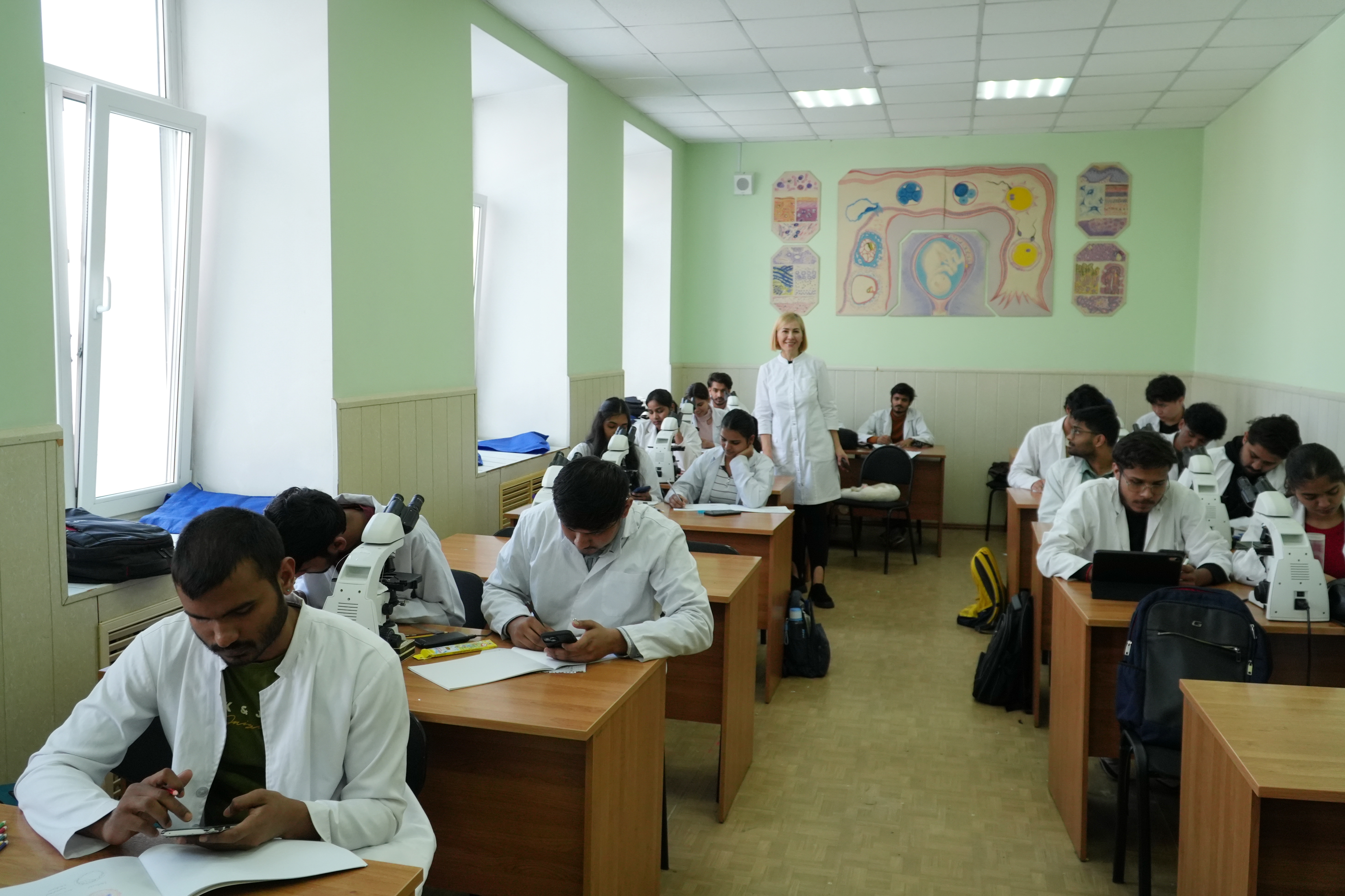 Первокурсники Амурской ГМА, приехавшие к нам на обучении из Индии, приступили к изучению новой дисциплины. Теперь они частые гости кафедры гистологии и биологии.