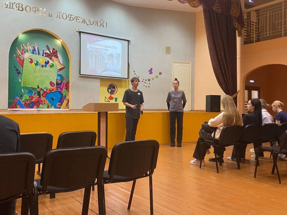 Кафедра травматологии с курсом медицины катастроф организовала цикл профориентационных бесед в подшефных школах посёлка Архара. Беседы провели студенты Амурской ГМА — Дмитрий Ложкин и Алёна Пермякова.