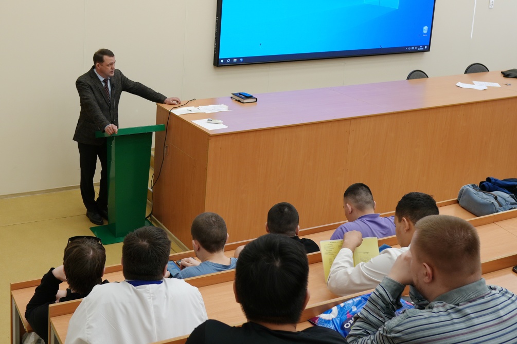 В рамках серии «Уроков мужества» со студентами шестого курса провёл встречу сотрудник пункта отбора по контракту Константин Геннадьевич Дружинин.