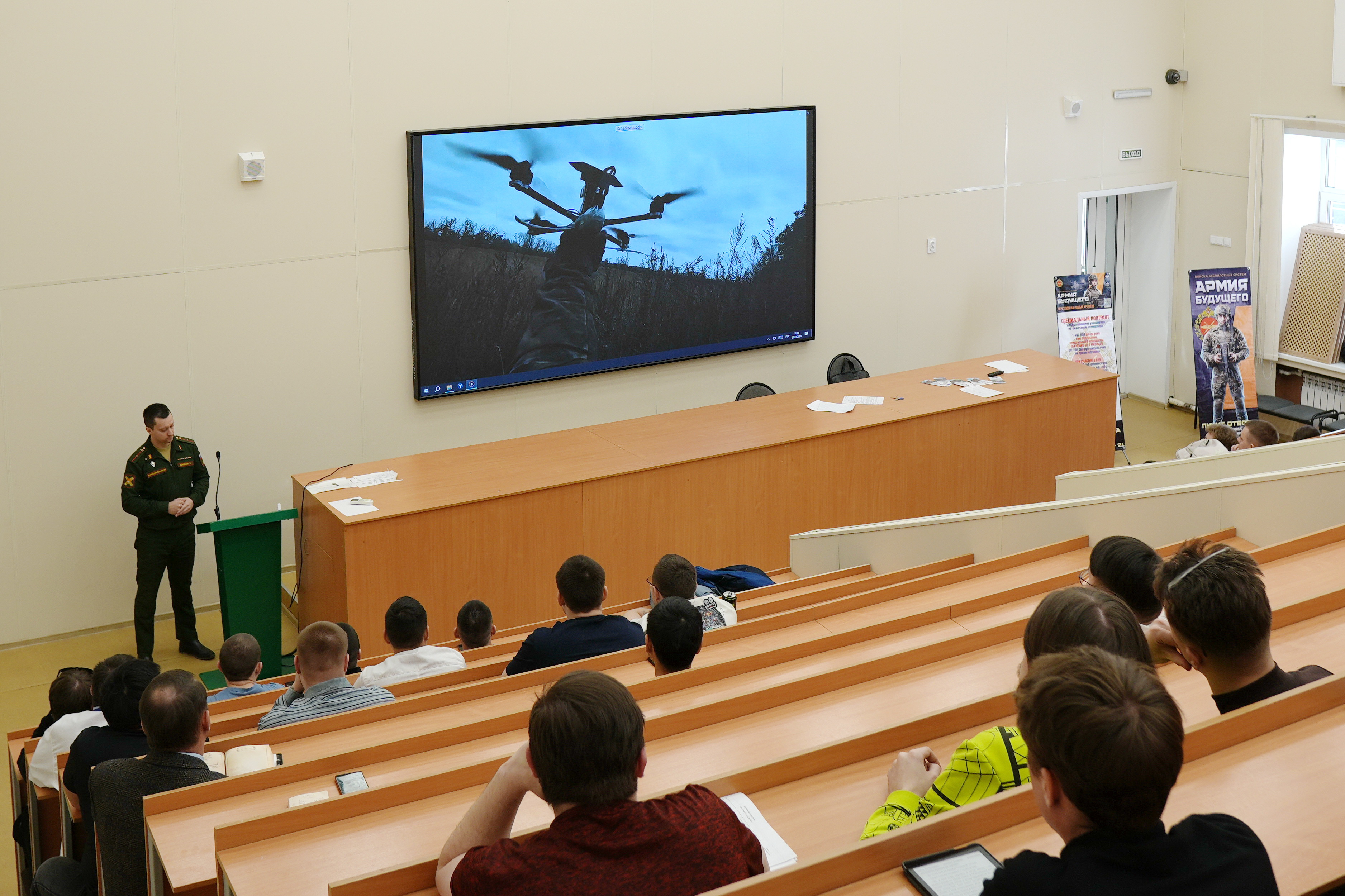 Константин Геннадьевич рассказал о службе в войсках беспилотных систем Российской Федерации, обучении программированию и пилотированию беспилотных систем различных типов, привёл примеры из жизни, ответил на все возникшие у ординаторов вопросы. Парни посмотрели информационные ролики про обучение, которое проходит в городе Чита и узнали, какие выплаты полагаются тем, кто принял решение попробовать себя в новой профессии.