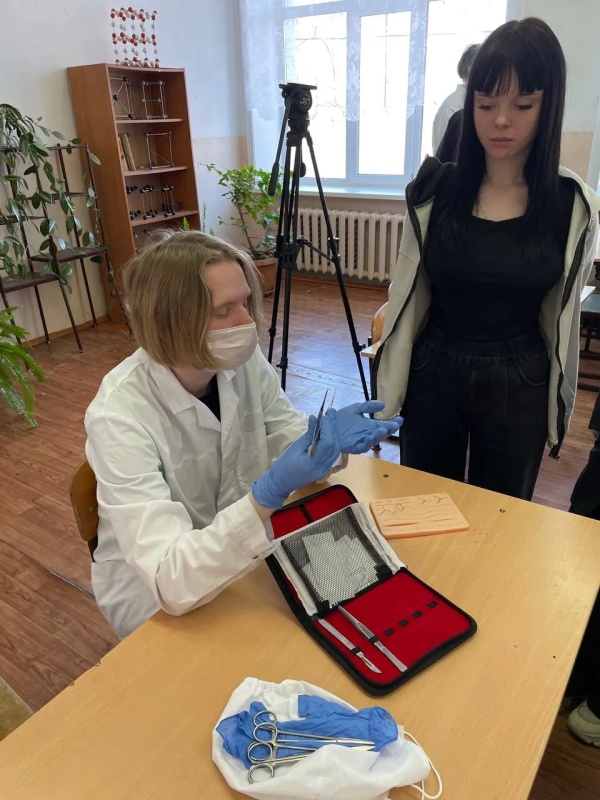 В роли наставников выступили Андреенко Егор, Скрябин Альберт и Бородин Ишхан. Студенты подготовили насыщенную программу, которая оказалась интереснее обычных уроков. Главный акцент сделали на практике: школьники сами попробовали делать перевязки и отрабатывали движения под чутким руководством студентов-медиков. Для подростков это был шанс почувствовать себя настоящими врачами.