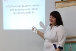 «Этот тренинг мы проводим перед большой студенческой конференцией. Ребята выполнят ряд упражнений, которые помогут им снять напряжение и внутренние зажимы. Также мы расскажем, какие виды выступлений предстоят им в будущем, научим вербальным и невербальным техникам общения и тому, как их правильно соединить. В конце занятия ребятам нужно будет провести перед собравшимися самопрезентацию, а их выступления оценит жюри», - рассказала Виктория Зарицкая.