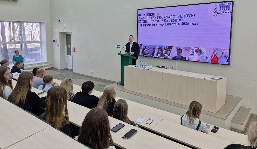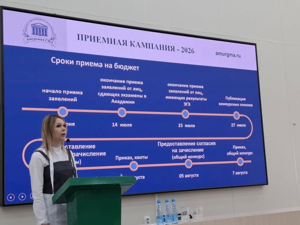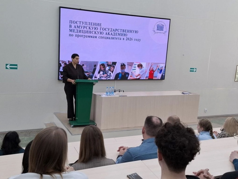 Проректор по молодежной политике и воспитательной деятельности Ирина Анатольевна Бердяева рассказала школьникам о правилах приёма и особенностях поступления в Амурскую ГМА.
