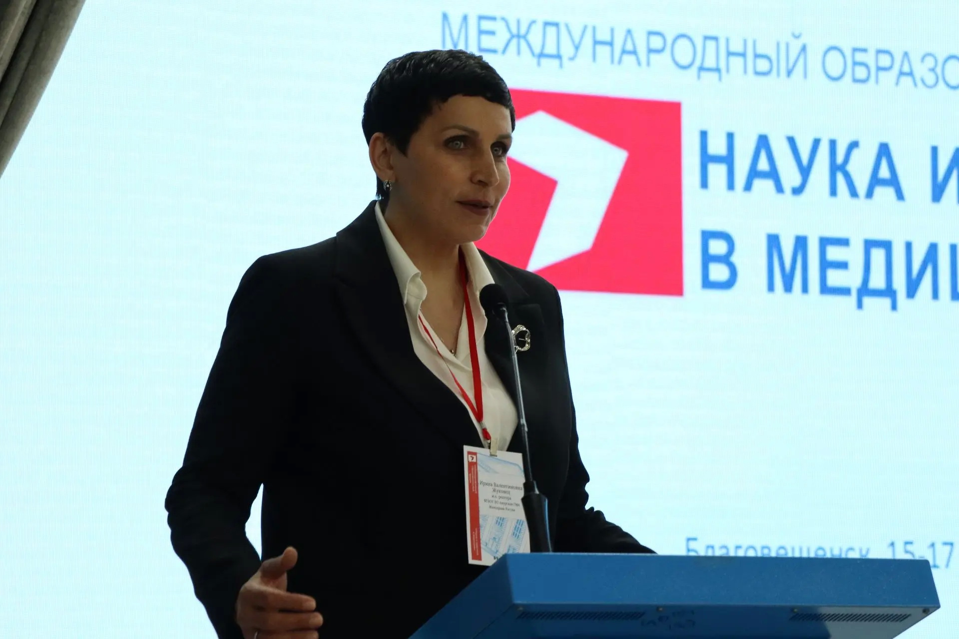 На открытии форума гостей Амурской ГМА, преподавателей и студентов поприветствовала и. о. ректора медакадемии Ирина Валентиновна Жуковец.