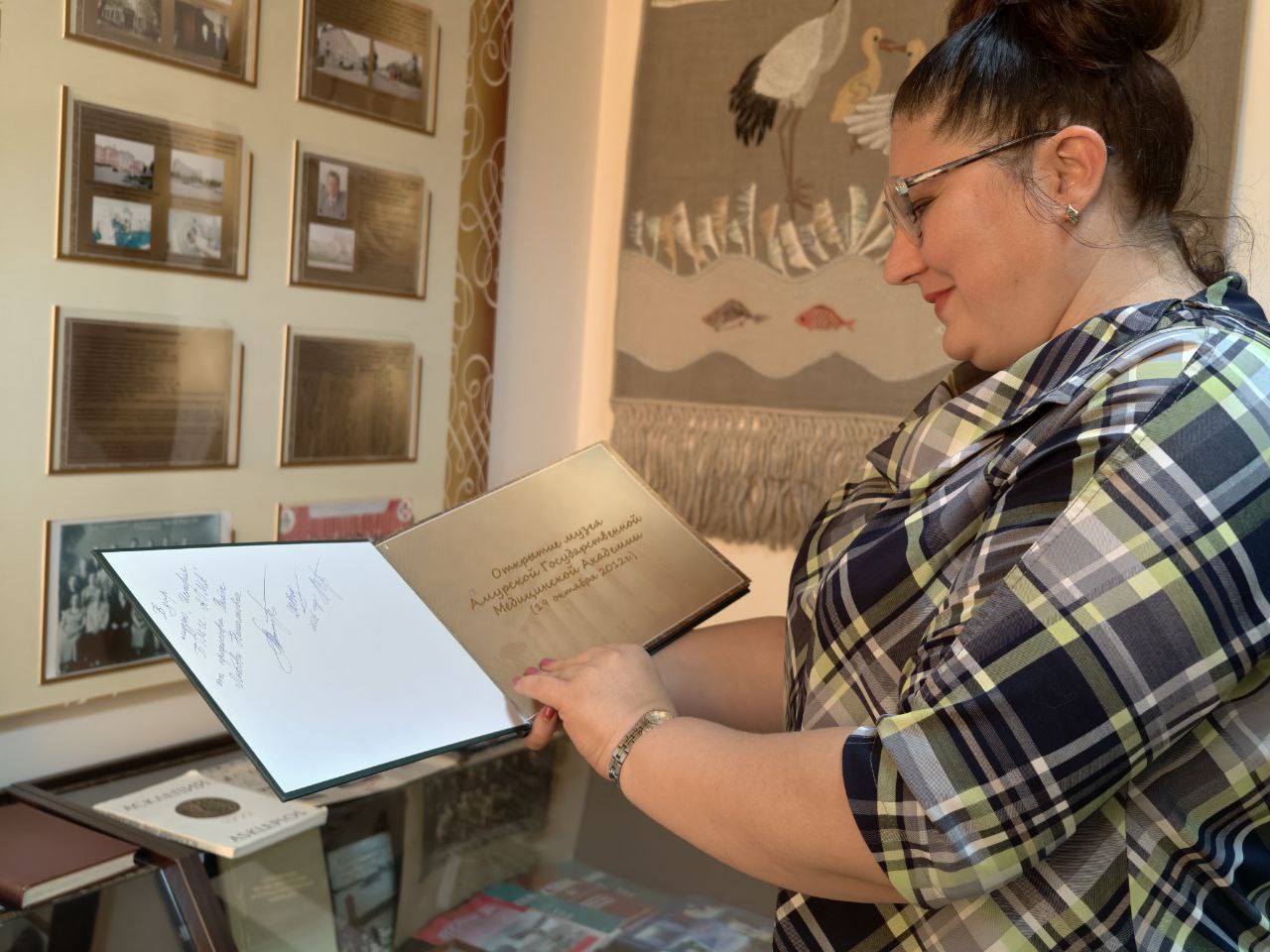 «Я познакомила студентов с историей амурской медицины, с историей вуза, рассказала о тех выдающихся педагогах и врачах, которые внесли огромный вклад в развитие медицины в нашей области и стали знаковыми фигурами для академии, - рассказала куратор музея академии, доцент кафедры общественного здоровья и здравоохранения Мария Иванова. - Мы установили творческий контакт с организатором этого музейного пространства, бывшей заведующей кафедрой ОЗЗ, Любовью Николаевной Войт, и она любезно передала нам много новых материалов для фондов музея».