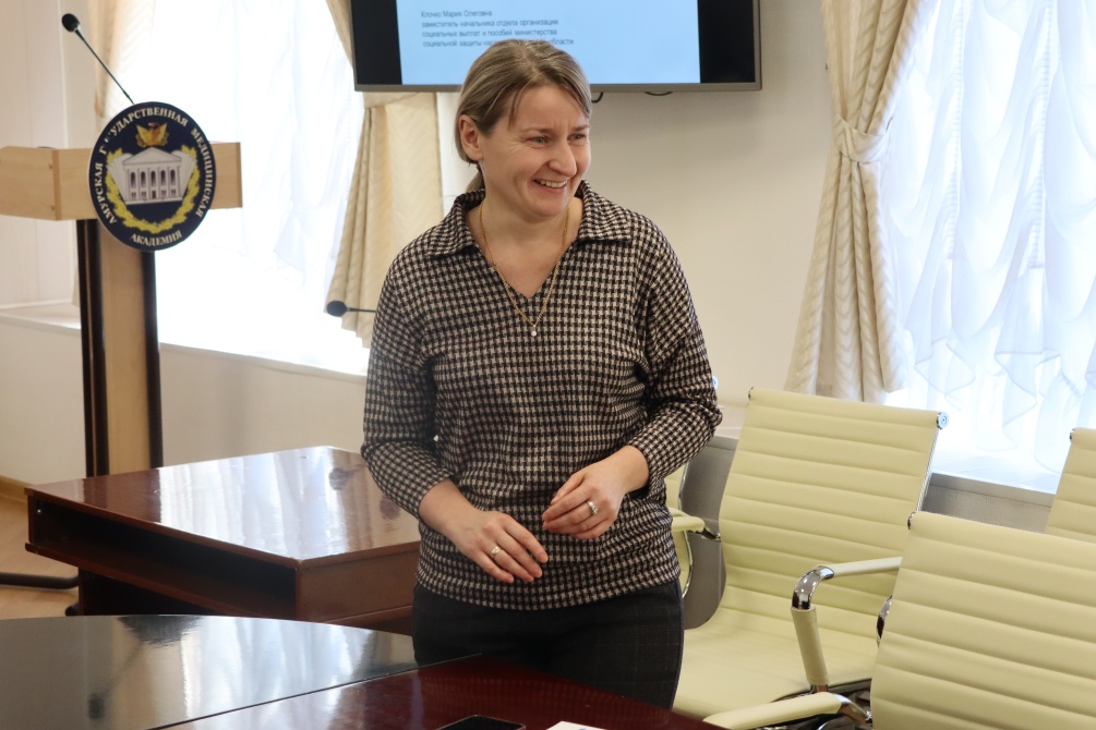 О существующих мерах социальной поддержки молодых семей студентам рассказала заместитель начальника отдела организации социальных выплат и пособий министерства социальной защиты населения Амурской области Мария Клочко. Она подробно рассказала обо всех вариантах и объяснила, кто может на них претендовать. После презентации все желающие смогли задать интересующие их вопросы, а также высказать свои предложения.