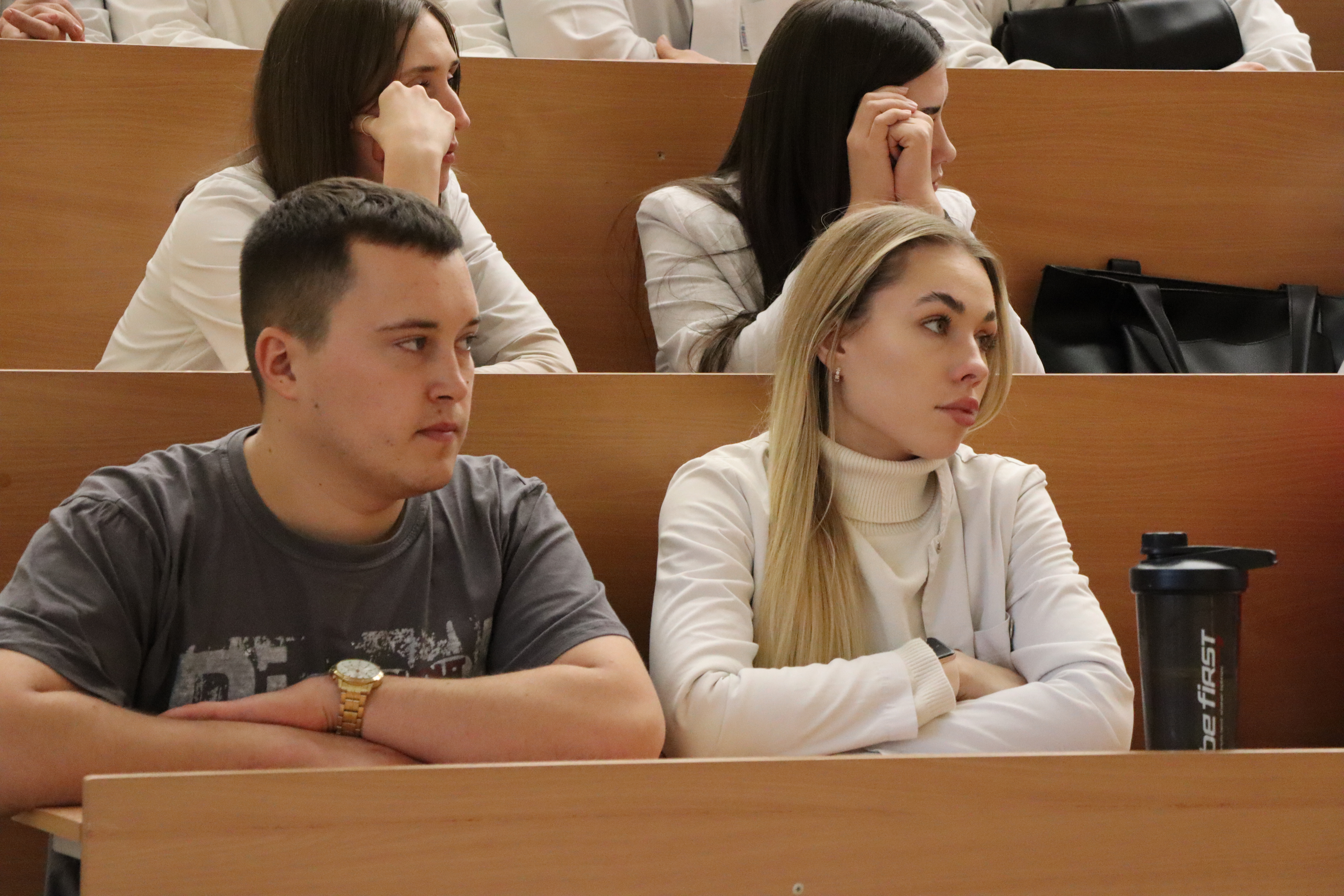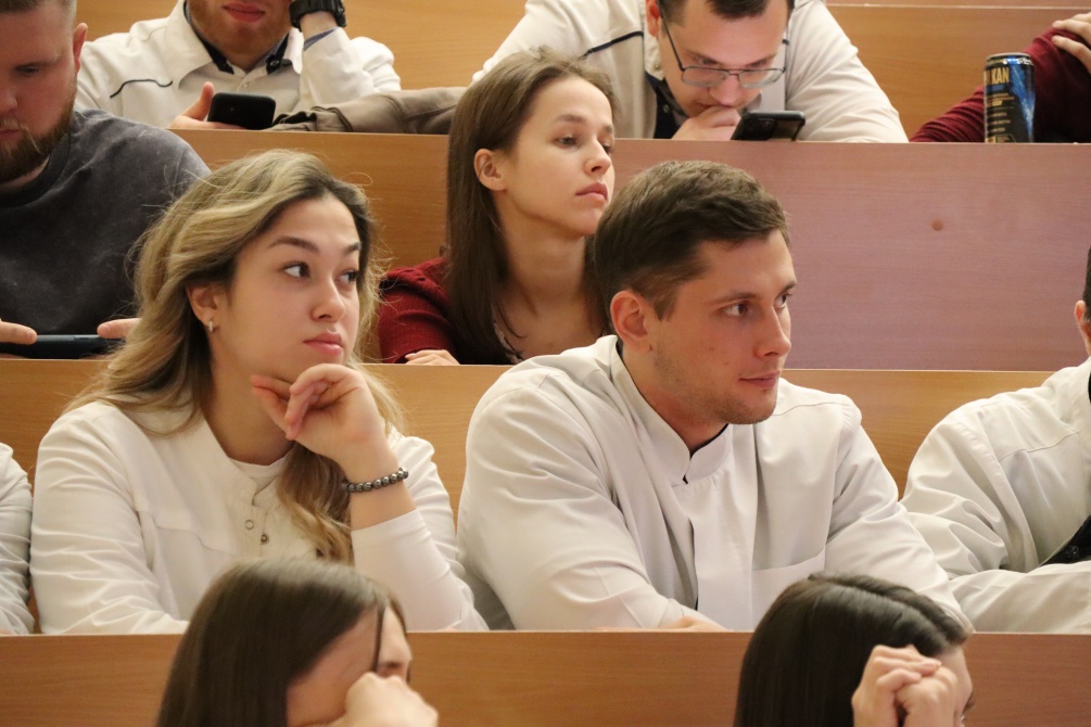 Также на встрече с шестикурсниками присутствовали представители профсоюзов работников здравоохранения. Они рассказали студентам о правовых основах трудоустройства в медицинской сфере. В конце встречи все желающие студенты смогли задать интересующие их вопросы.