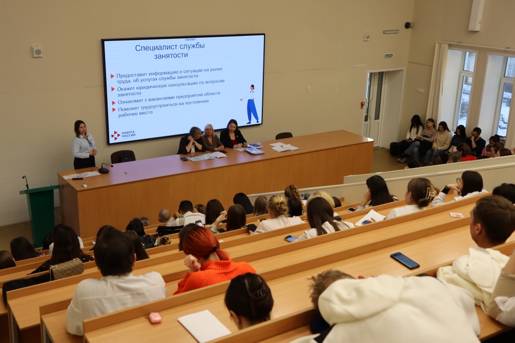 Встреча с представителями службы занятости состоялась в Амурской государственной медицинской академии. Со студентами шестого курса пообщалась ведущий инспектор Центра занятости населения Лариса Бабкина.