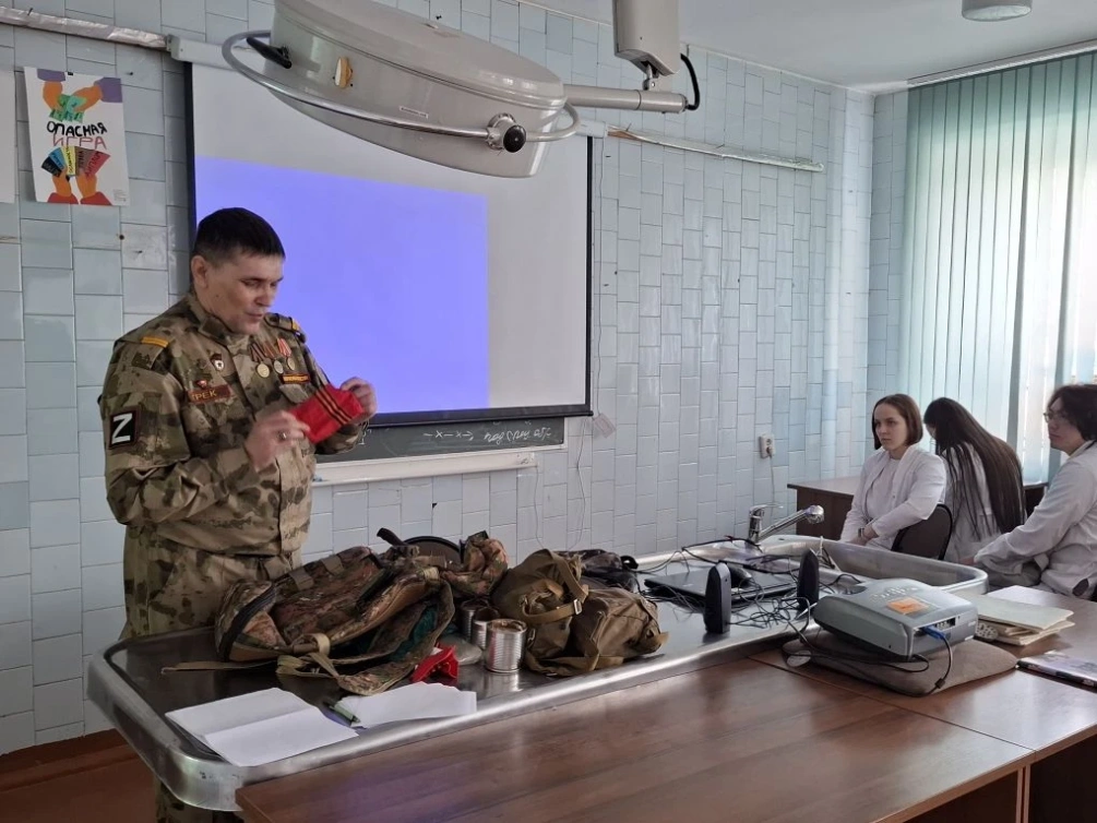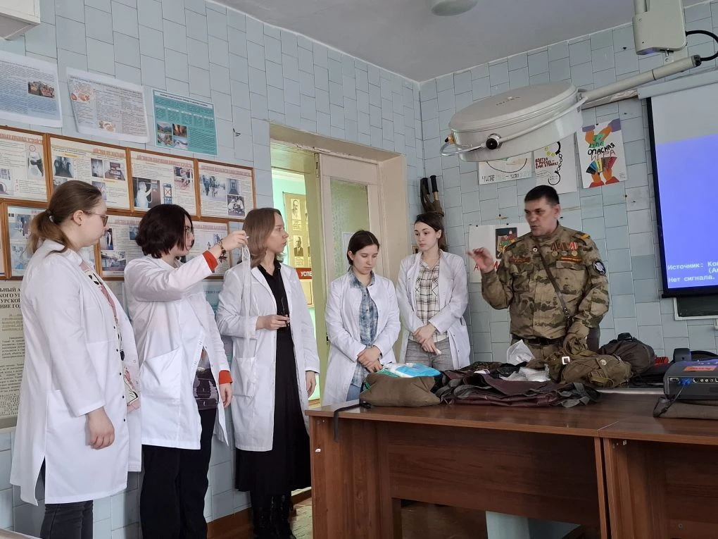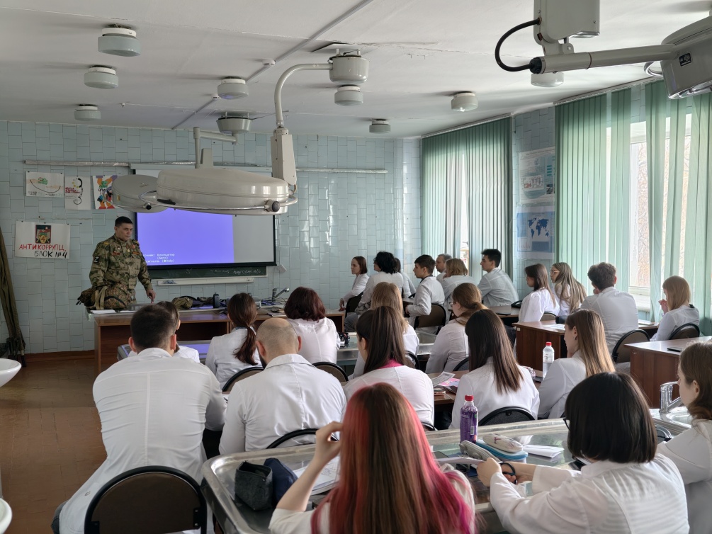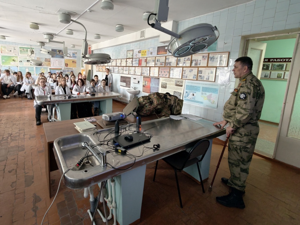 На кафедре травматологии с курсом медицины катастроф состоялась встреча студентов с участником специальной военной операции, представителем Боевого братства и Ассоциации ветеранов СВО Анатолием Шаниным. Он рассказал им о технике безопасности и применении медицинских навыков на передовой