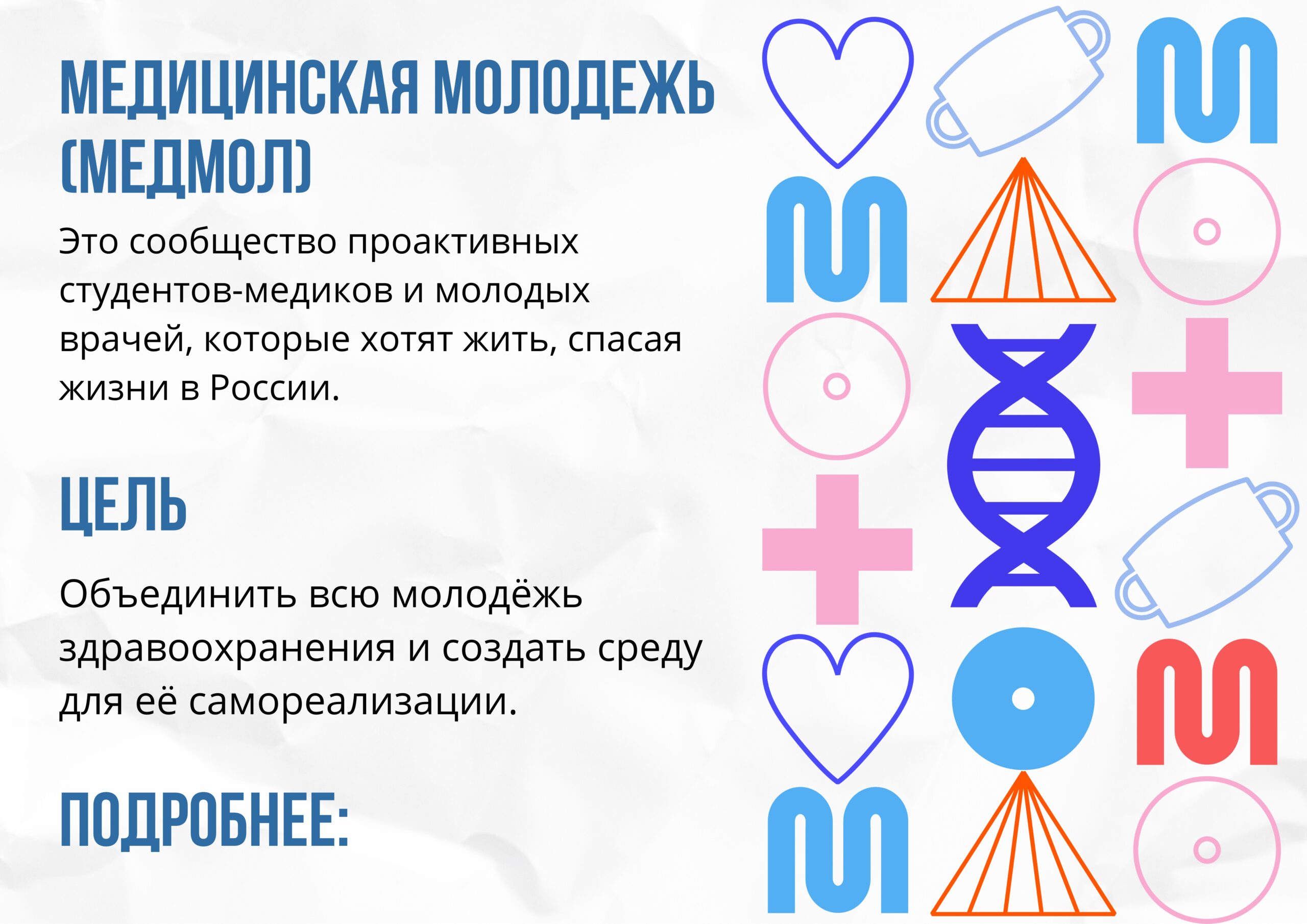 Миссия работы с молодежью в образовательной организации: воспитание патриотичной и социально ответственной личности обучающегося медицине, обладающего безупречным профессионализмом, на основе ценностей России и здравоохранения.